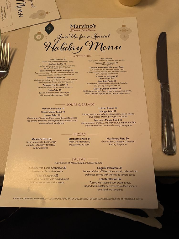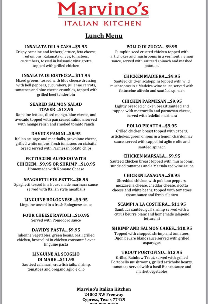 Located in Cypress, TX, Marvino's Italian Steakhouse offers a delightful blend of Italian flavors and classic steakhouse fare. The menu features an enticing array of appetizers such as Fried Calamari and Bacon Wrapped Seared Scallops, perfect for sharing. For pasta lovers, options like Lobster Ravioli and Akaushi Lasagna showcase rich, authentic Italian cuisine.