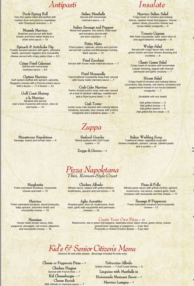 With a variety of vegan and vegetarian options available, Marvino's caters to diverse palates, ensuring everyone in the party leaves satisfied. Don’t forget to indulge in their delectable desserts, including a standout tiramisu. Experience the warmth and flavor at Marvino's today!